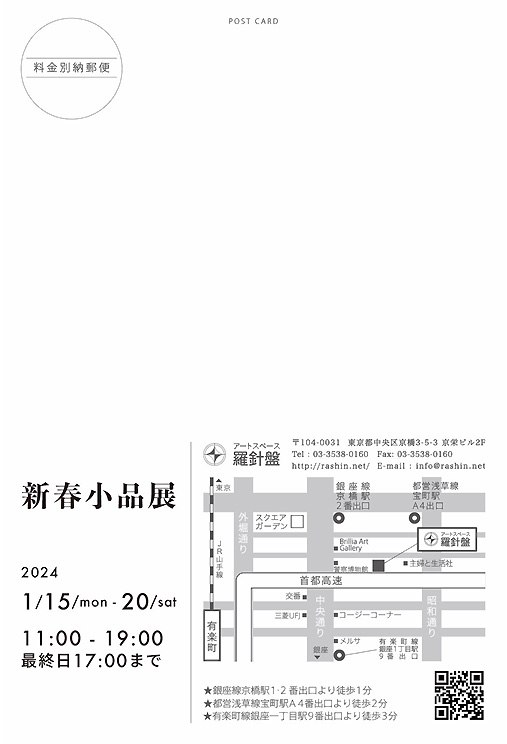 ■会期■ 2024年1月15日(月)~20日(土) 11:00~19:00 (最終日17:00まで) ■会場■ アートスペース羅針盤 中央区京橋3-5-3 享栄ビル2F