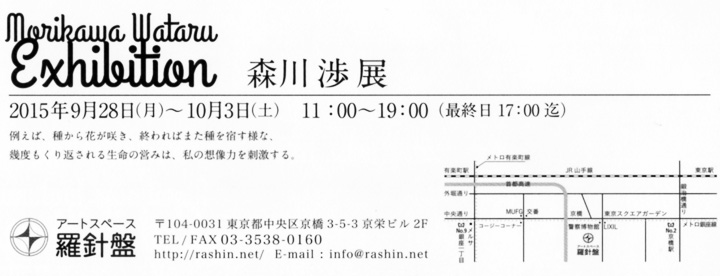 ■会期■ 2015年9月28日(月)~10月3日(土) 11:00~19:00(最終日17:00迄) ■会場■ アートスペース羅針盤 東京都中央区京橋3-5-3 京栄ビル2F ■ 03-3538-0160